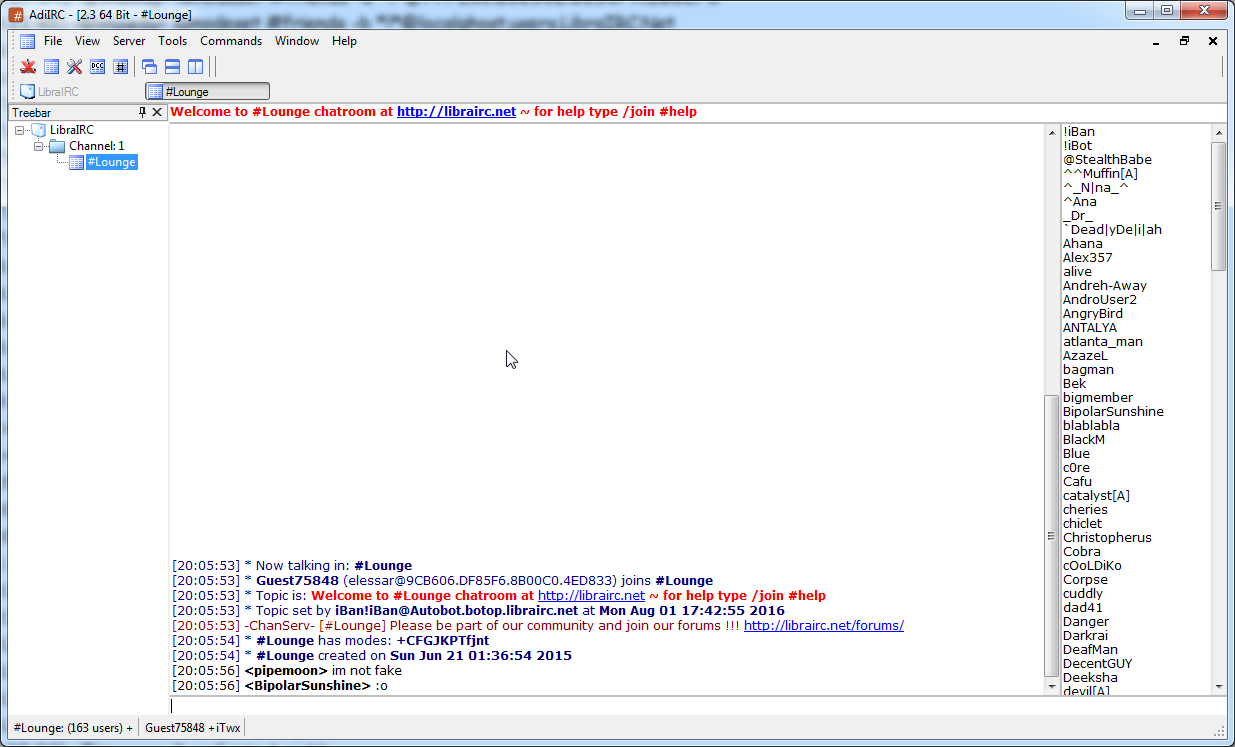 You will be added LibraIRC to the client list now, just change the settings as you like i.e your nickname, channels, login method, connect to the network on startup etc..